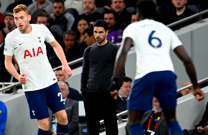 Mikel Arteta, stjóri Arsenal, var allt annað en sáttur við dómgæsluna í 3-0 tapi liðsins gegn Tottenham í ensku úrvalsdeildinni í kvöld en hann vildi þó lítið tjá sig til að eiga ekki í hættu á að fara í bann.