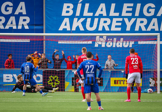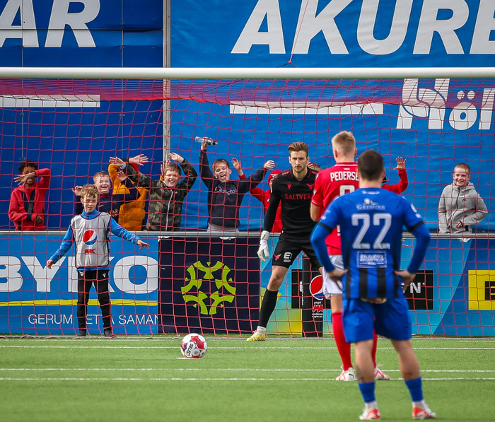 KA fékk víti í lok fyrri hálfleiks í leiknum gegn Val í Bestu-deild karla í gær og gat jafnað leikinn í 1 - 1.
