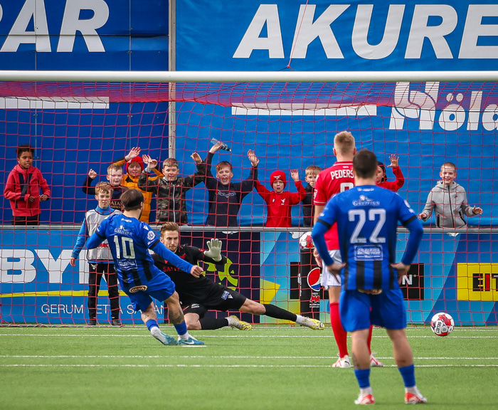 Fyrir aftan markið hafði komið sér fyrir hópur krakka og reyndi að beita truflunum til að taka Hallgrím úr sambandi. Svona svolítið eins og við þekkjum úr NBA. Þeim varð þó ekki erindi sem erfiði því Hallgrímur Mar skoraði úr spyrnunni af miklu öryggi í bláhornið. Það taldi þó ekkert að lokum því Valur vann 3 - 1.
