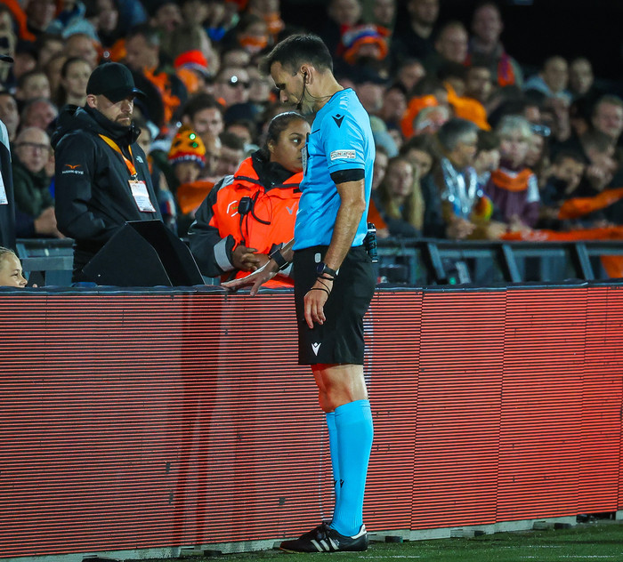„Ég fór aftur yfir þessi atriði sem Maggi vildi fá vítaspyrnu á. Þegar Fatai á að hafa farið í Aron Jó, ég í alvörunni sé ekki snertinguna þarna, get ekki séð að þetta sé vítaspyrna út frá þessu eina sjónarhorni. Svo vilja þeir fá hendi undir lok leiks, það er bara skot sem mér sýnist fara í rassinn á varnarmanni Vestra. Ef boltinn snertir á honum hendina þá er það aldrei vítaspyrna af því boltinn er á leið í líkamann á varnarmanninum."