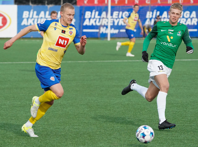 Sævar Geir Sigurjónsson var með myndavélina á Akureyri í gær þegar Breiðablik vann 1-0 útisigur á KA. Heimamenn fara illa af stað í deildinni en Blikar eru á toppnum ásamt Vestramönnum og Víkingum.