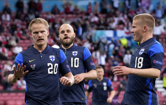 Danir náðu ekki að finna glufur á sterkri vörn Finna og lokatölur 1-0. Danmörk var 70 prósent með boltann og átti 22 marktilraunir. Við Íslendingar þekkjum það hins vegar best að það þarf ekki að halda boltanum mikið til þess að vinna leiki. Finnar áttu eina marktilraun og sú tilraun endaði í markinu. Það er hægt að segja að Finnar hafi farið íslensku leiðina í dag í þessum erfiða leik í dag.