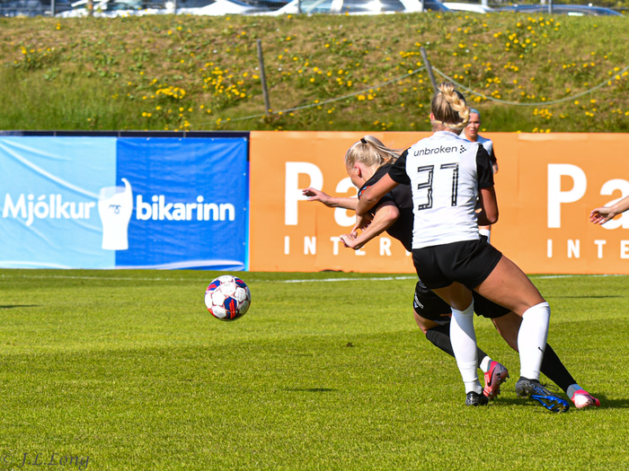 Sandra María Jessen tryggði Þór/KA sigur á FH í Mjólkurbikarnum í gær og liðið þar með komið í undanúrslitin. Jóhannes Long tók þessar myndir á leiknum.