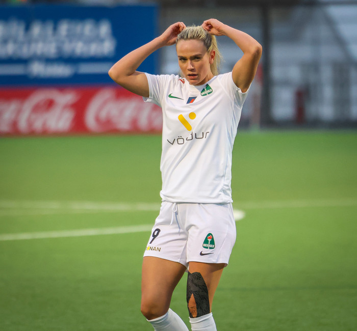 Agla María hefur frá því júní hófst skorað sjö mörk í átta leikjum í öllum keppnum og lagt upp tvö mörk. Hún er 23 ára vinstri kantmaður, landsliðskona sem er nú að undirbúa sig fyrir vináttulandsleik gegn Finnlandi.
