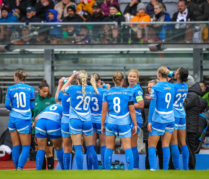 Þorsteinn Halldórsson nýtti sér þetta óvænta hlé á leiknum og kallaði leikmenn til sín á smá fund og fór yfir málin. Fannst honum tímasetning meiðsla Fanneyjar kannski sérstaklega heppileg til þessa fundarhalds?