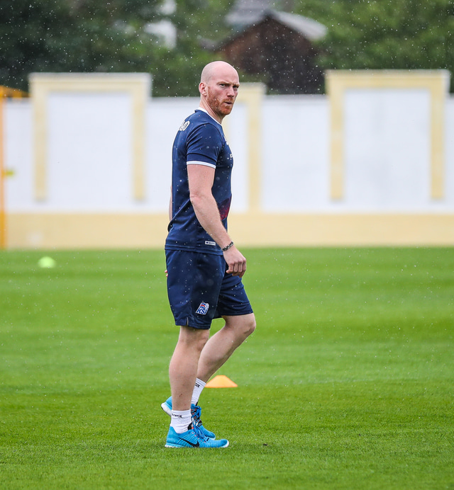 Gólf var lagt yfir grasið á Laugardalsvelli og völlurinn kemur vel út að sögn Kristins.