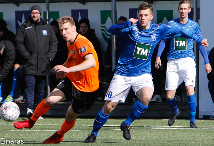 Blikar unnu leikinn 2-1 sigur gegn Íslandsmeisturum Vals. Sigurmarkið var flautumark Arnórs Gauta.