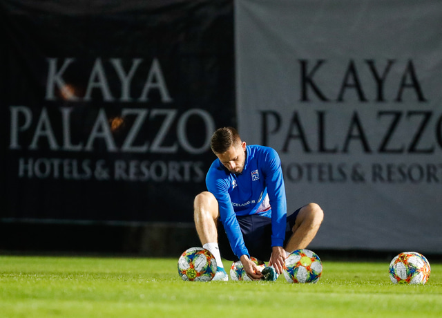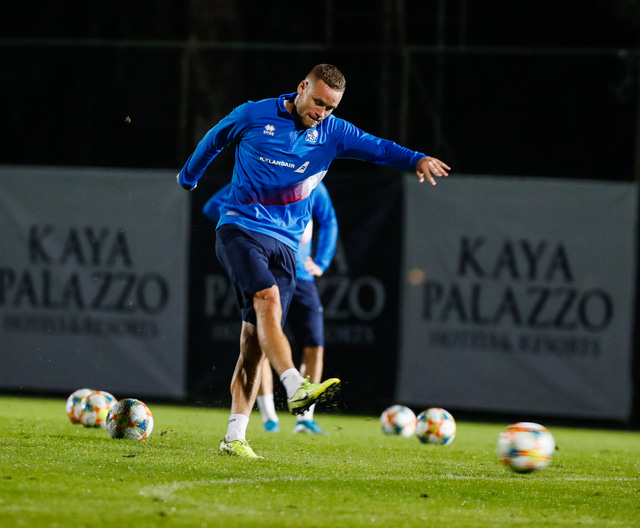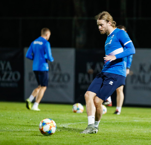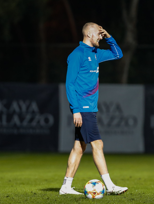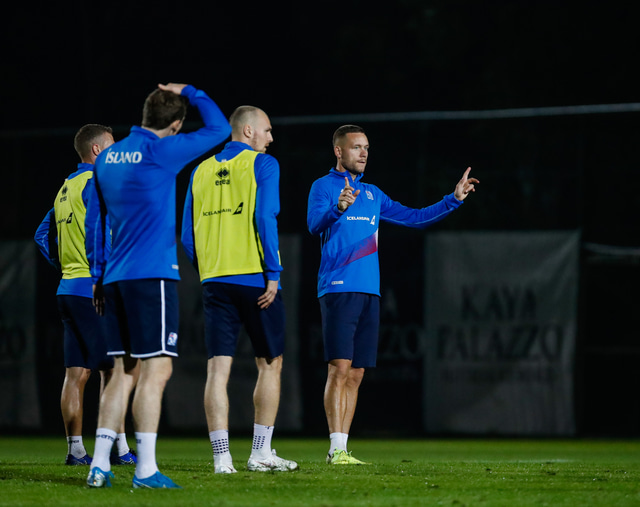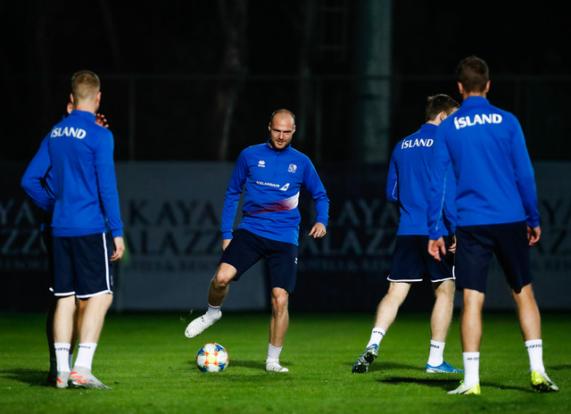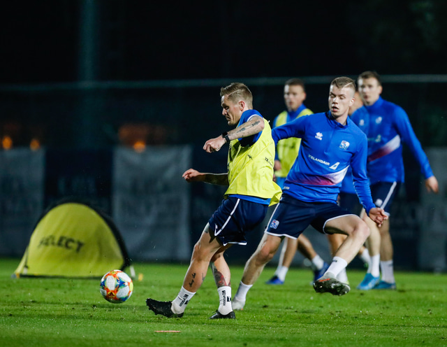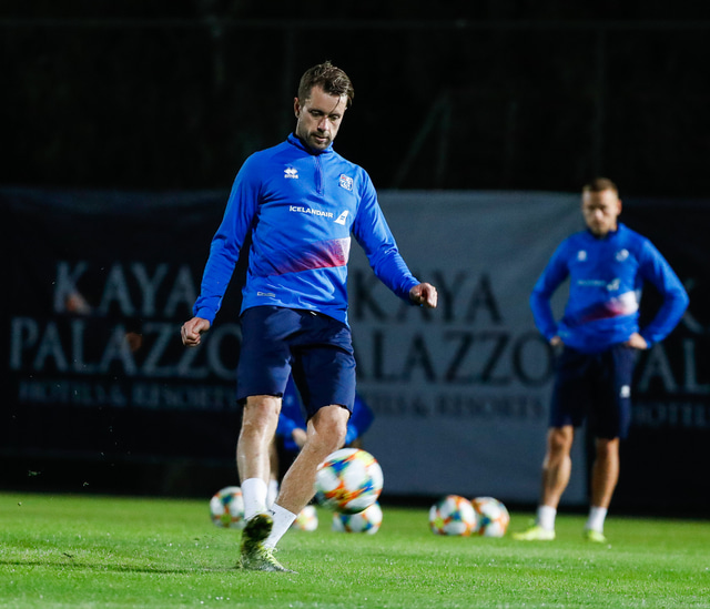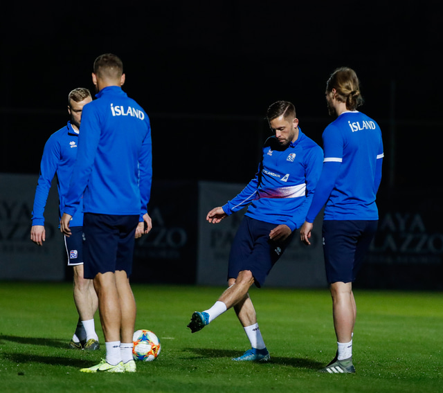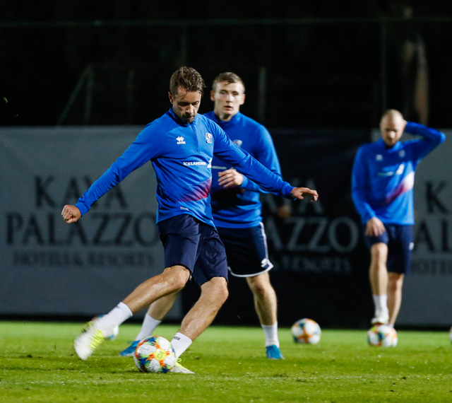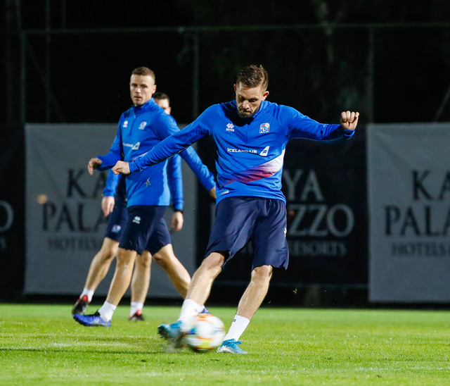 Íslenska landsliðið er í Belek rétt fyrir utan Antalya í Tyrklandi þar sem liðið æfir sig fyrir leik gegn heimamönnum í undankeppni EM 2020 á fimmtudagskvöldið. Hér að neðan má sjá myndir af æfingu liðsins í gær en liðið er með æfingavöll við hótelið sitt þar sem æfingar fara fram þessa dagana.