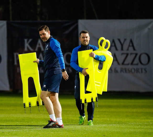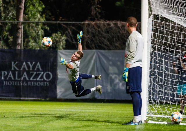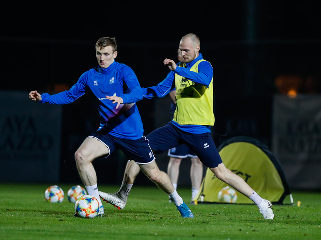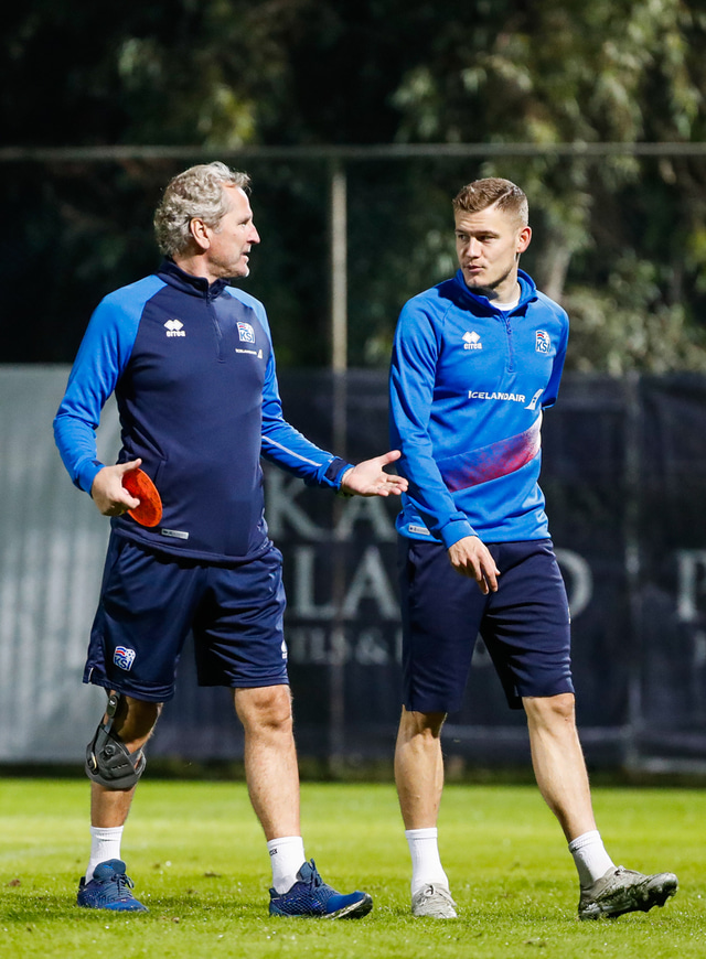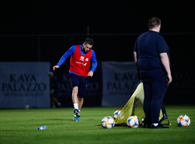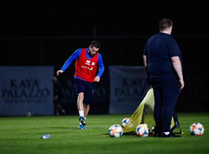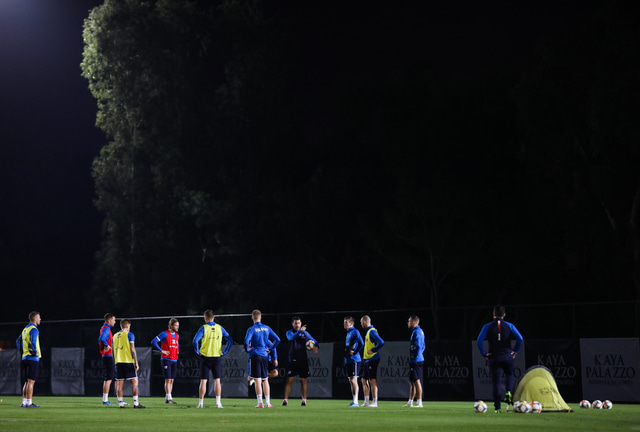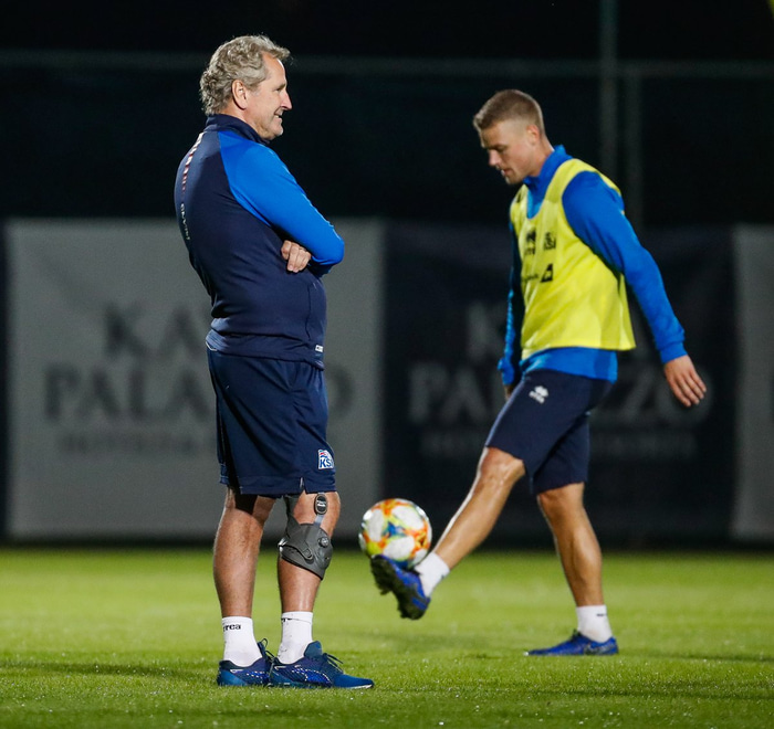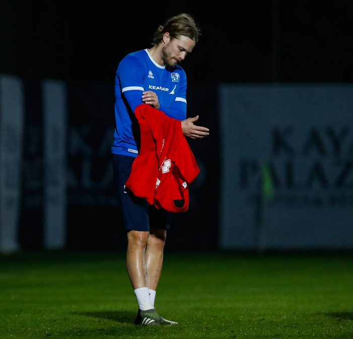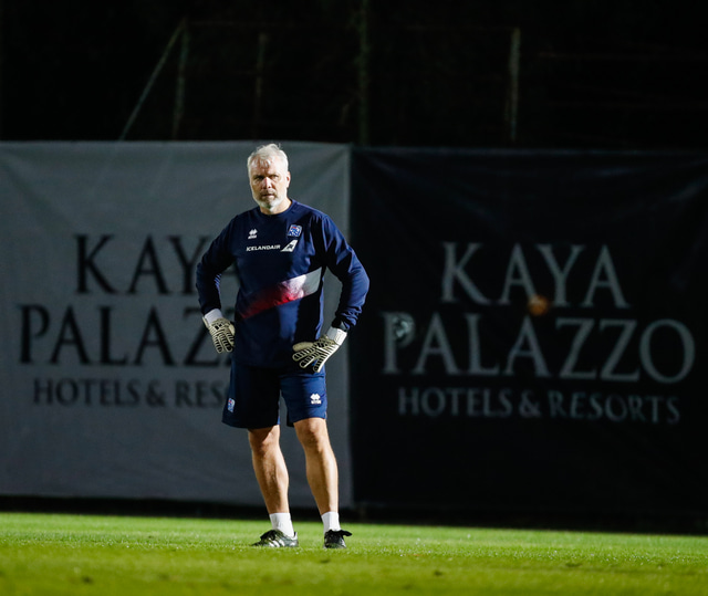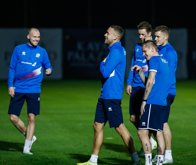 Íslenska landsliðið er í Belek rétt fyrir utan Antalya í Tyrklandi þar sem liðið æfir sig fyrir leik gegn heimamönnum í undankeppni EM 2020 á fimmtudagskvöldið. Hér að neðan má sjá myndir af æfingu liðsins í gær en liðið er með æfingavöll við hótelið sitt þar sem æfingar fara fram þessa dagana.