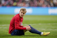 Ödegaard er með norska landsliðinu sem á leiki fyrir höndum gegn Eistlandi og Ítalíu. Noregur þarf einn sigur til að tryggja sér sæti á HM. Ödegaard verður í stuðningshlutverki í hópnum, vitað var að hann myndi ekki spila með liðinu. Hann fær meðhöndlun hjá læknateymi norska landsliðsins.