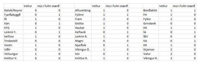 Hvað er til ráða? Áhugavert er að skoða efstu þrjár deildirnar í íslenskri karla knattspyrnu og telja fjölda vetrarvalla á þeirra svæði eða í þeirra sveitarfélagi.