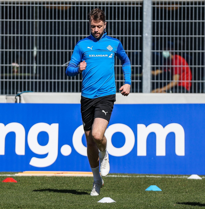 Kári skallaði allnokkra bolta frá í leiknum, spurning hvort hann hafi engar áhyggjur af höfuðverk.