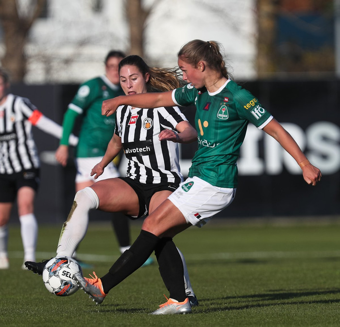 „Já og nei, þetta er fótbolti og margar sem ég hef spilað með og þekki úr landsliðinu. Liðið er líka svipað uppsett, tvær fyrir framan og ein djúp. Þetta er svipað hlutverk sem ég er í," sagði hún en hún var þó mjög dugleg að koma til baka og sækja boltann?
