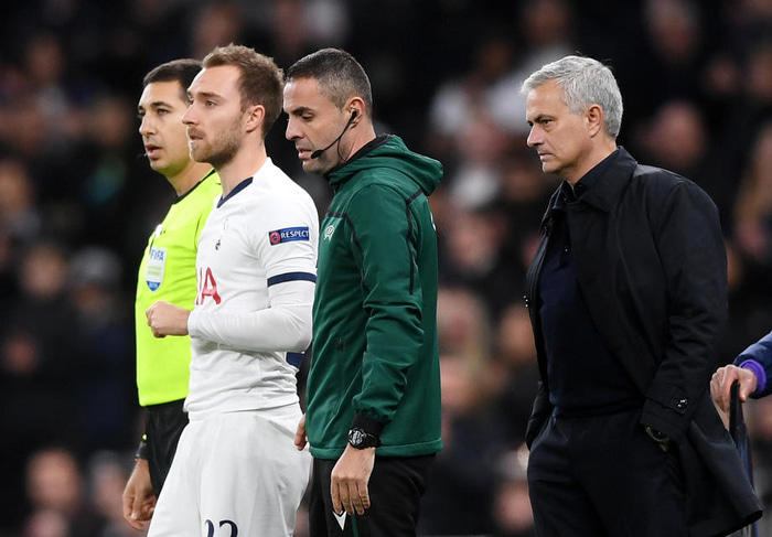 Mourinho segist hafa spjallað við Pierre-Emile Hojbjerg, leikmann Tottenham og danska landsliðsins, og að fréttirnar af Eriksen séu góðar.