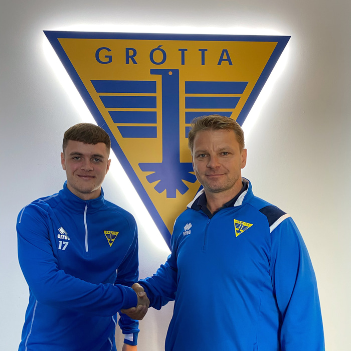 McGrath er sóknarmaður sem kom til Gróttu á lokadegi félagaskiptagluggans. Grótta skipaði hann í sóttkví en núna er hann búinn með hana.