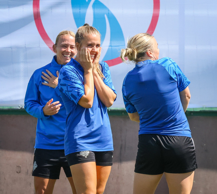 Fyrir fyrsta leik æfði liðið á Akademíuvellinum - þar sem spilað er - en það eru til staðar reglur sem bönnuðu liðinu að æfa þar í dag.