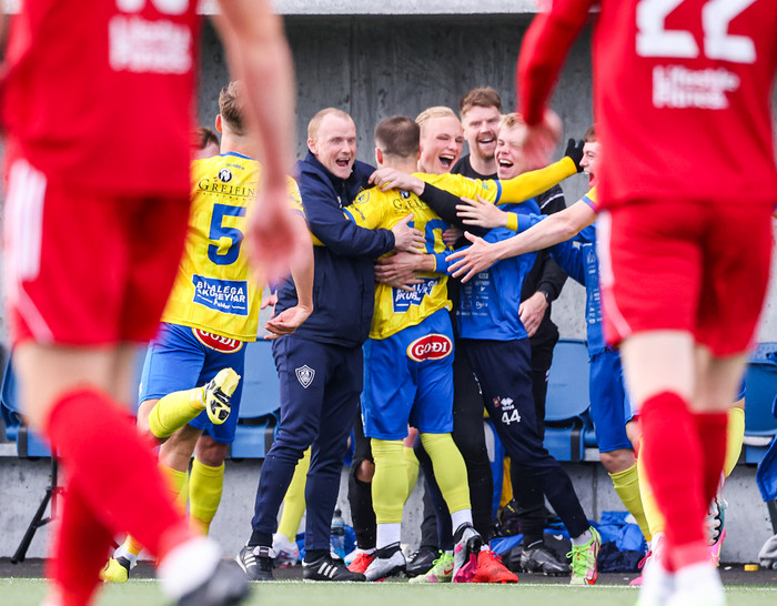„Djöfull var ég feginn (þegar Daníel skoraði), það er svo leiðinlegt að vera í leik í lokin með 1-0. Þá kemur eitthvað stress og panikk, það var ljúft að sjá boltann inni, þá vissi maður að þetta var nánast komið," sagði Grímsi.