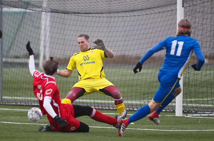 Rúnar er markvörður liðsins en liðið vann Njarðvík 0-2 á útivelli. Rúnar var á mála hjá Njarðvík en yfirgaf félagið þegar Bjarni Jó tók við.