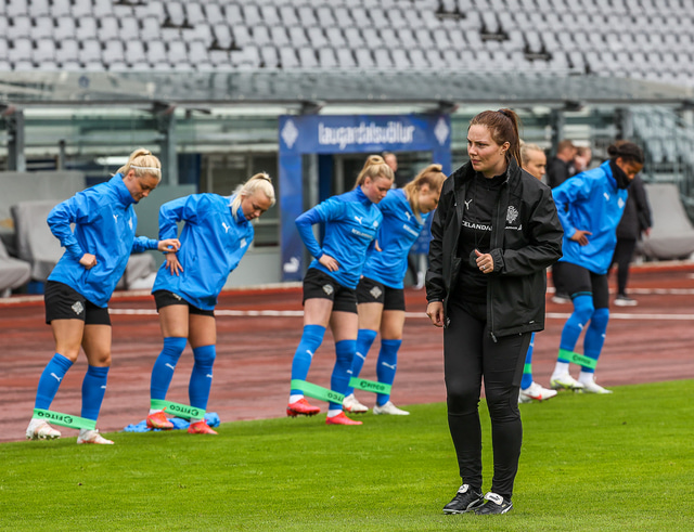 „Það er kona í þjálfarateyminu, partur af aðstoðarþjálfarateyminu. Hún er styrktarþjálfari." sagði Þorsteinn.