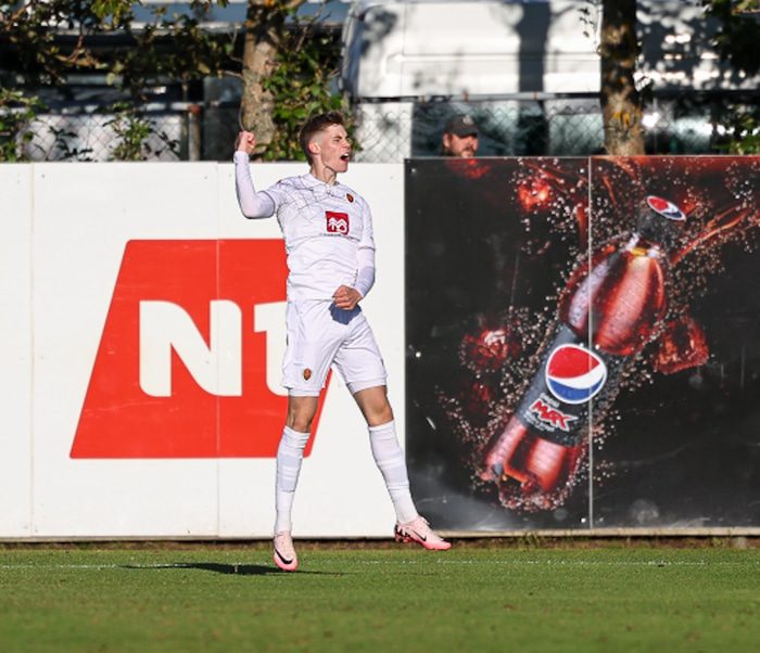 Gísli Gottskálk Þórðarson kom Víkingum yfir eftir rúmlega tíu mínútna. Ari Sigurpálsson renndi boltanum inn á teiginn og Gísli mætti og skoraði á opið markið.