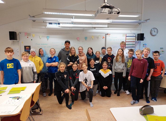 Mikael birtist óvænt og kom færandi hendi með landsliðstreyjuna úr leiknum gegn Liechtenstein. Sandgerðisskóli birti frétt á heimasíðu sinni og fylgdi mynd með.