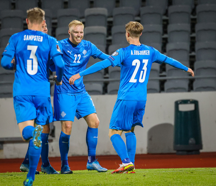 Guðjohnsen bræðurnir Andri Lucas og Sveinn Aron unnu vel saman í fjórða marki Íslands gegn Liechtenstein í undankeppni HM. Úr varð mark sem lengi verður í minnum haft.