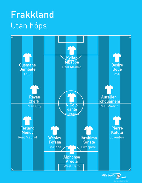 Hér fyrir neðan má sjá byrjunarlið leikmanna Frakka sem eru utan hóps í kvöld, hvort sem það er vegna meiðsla eða af öðrum ástæðum.