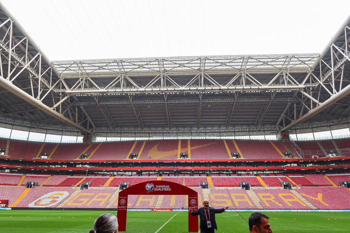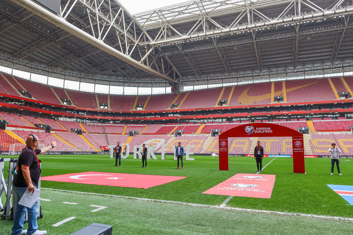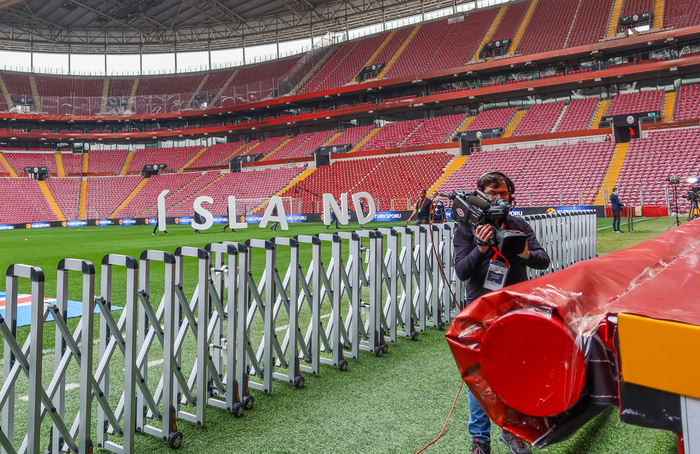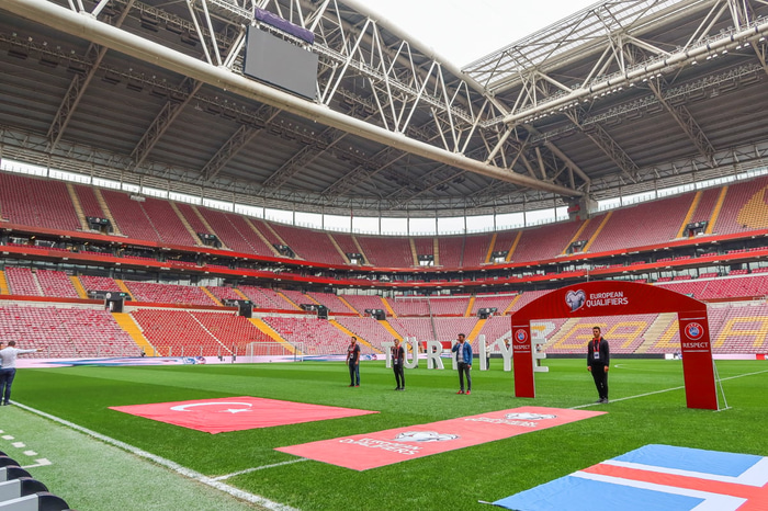 Það styttist í að Ísland muni æfa á Türk Telekom leikvangnum, á vellinum þar sem leikið verður gegn Tyrklandi á morgun.