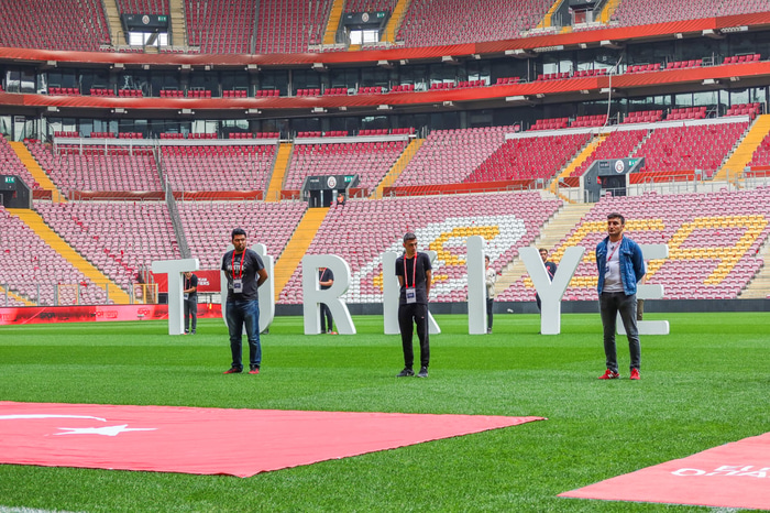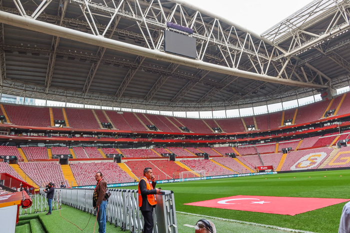 Íslenskir fjölmiðlamenn skoðuðu þetta magnaða mannvirki, sem er heimavöllur Galatasaray, nú áðan en þá voru í gangi æfingar fyrir sviðsmynd morgundagsins.