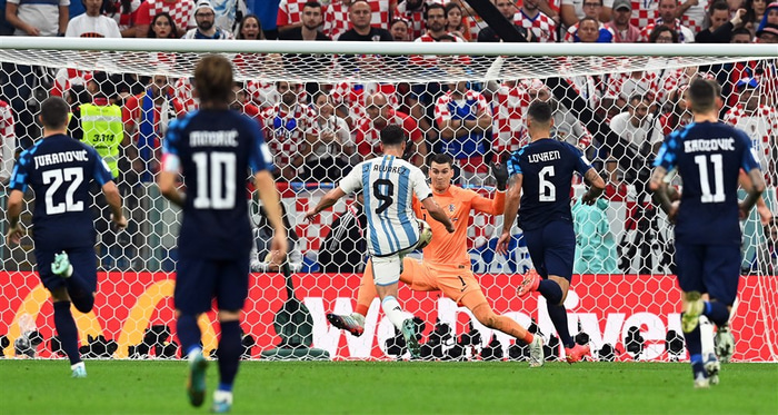 Stuttu síðar komst Argentína í góða skyndisókn. Alvarez hljóp með boltann framhjá þremur varnarmönnum áður en hann skoraði framhjá Livakovic.