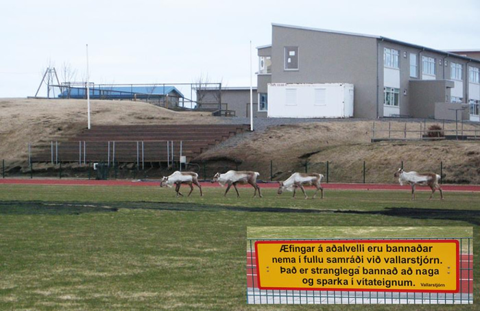 Leikurinn fór fram um síðustu helgi en í miðjum leik komu óvæntir gestir. Þá hlupu þrjú dádýr í gegnum völlinn á hörku spretti sem kom mönnum í opna skjöldu. Stöðva þurfti leikinn við þessa uppákomu.