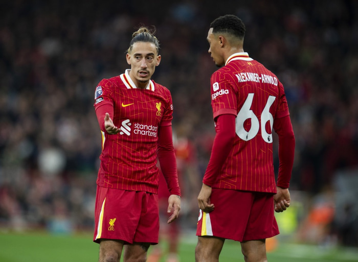 Diogo Jota skoraði jöfnunarmark Liverpool eftir hornspyrnu frá Kostas Tsimikas, en þeir tveir voru nýkomnir inná með tvöfaldri skiptingu frá Slot. Þeir skoruðu því og lögðu upp með sinni fyrstu snertingu.