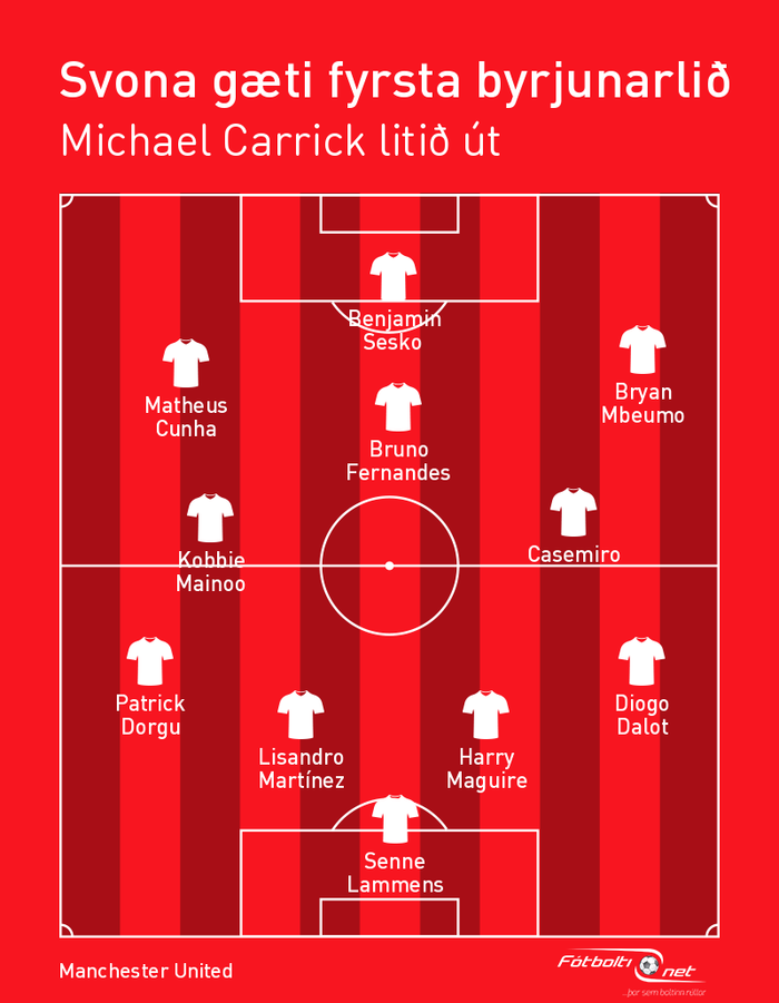Carrick aðhyllist 4-2-3-1 leikkerfi en forveri hans, Rúben Amorim, vildi spila með þrjá miðverði eins og frægt er. Það verður því enn meiri samkeppni meðal miðvarða United en áður.