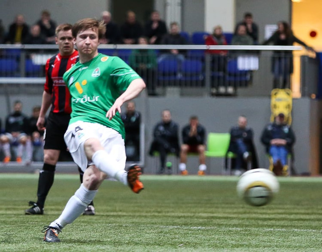 Húsvíkingurinn lét það ekkert slá sig út af laginu og mínútu síðar skoraði hann löglegt mark þegar hann tók góðan snúning í teignum og skoraði með föstu skoti. Þremur mínútum eftir það fiskaði Elfar Árni vítaspyrnu þegar Ingvar braut á honum. Sverrir Ingi Ingason fór á punktinn og skoraði af öryggi.