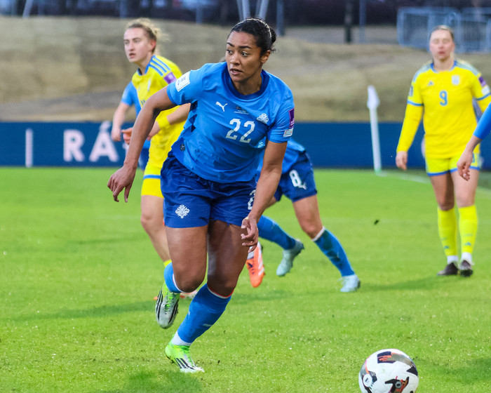 Linda Líf Boama steig sín fyrstu skref með A-landsliðinu þegar Ísland lagði Úkraínu 1-0 í kvöld. Hún fékk sínar fyrstu mínútur í treyjunni og lýsti mikilli ánægju með bæði frumraunina og sigurinn eftir leik.