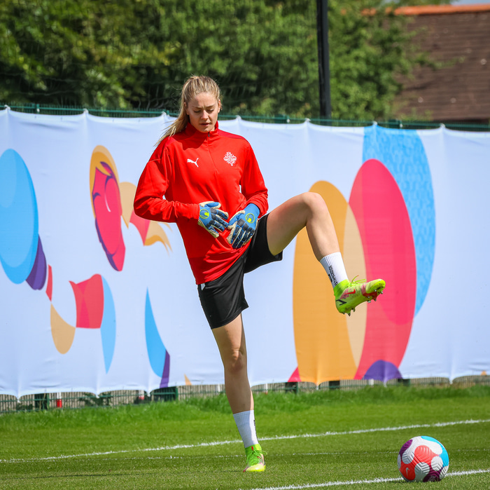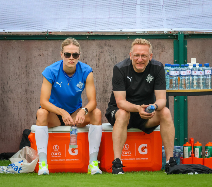 Landsliðsþjálfarinn Þorsteinn Halldórsson og leikmaður liðsins, Dagný Brynjarsdóttir, sátu fyrir svörum á blaðamannafundi í gær. Í dag fer fram annar leikur Íslands á EM, annar leikur af þremur í riðlakeppninni. Leikurinn í dag er gegn Ítalíu og hefst klukkan 16:00 á íslenskum tíma. Leikstaðurinn er Academy Stadium í Manchester sem er heimavöllur kvennaliðs Manchester City. Fundurinn fór fram á vellinum.