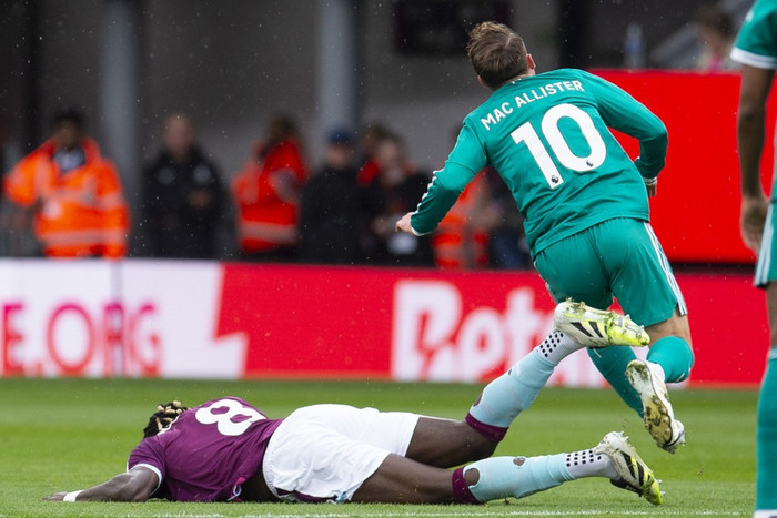 Í byrjun leiksins var franski miðjumaðurinn Lesley Ugochukwu heppinn að vera enn inn á vellinum er hann fór í harkalega tæklingu á Alexis Mac Allister og fylgdi vel á eftir í ökklann á honum. Michael Oliver, dómari leiksins, gaf honum gult spjald sem VAR staðfesti síðan.