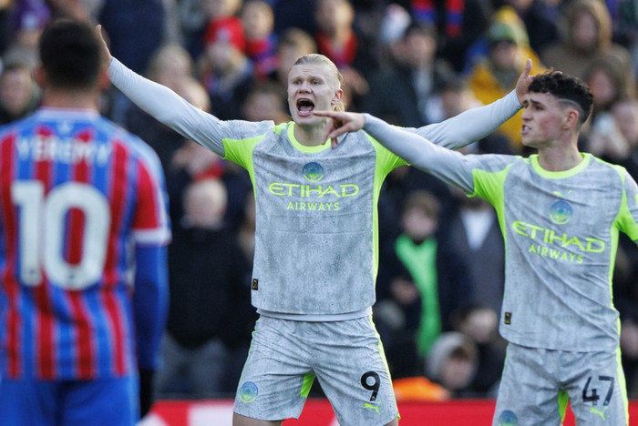 Erling Haaland skoraði tvö mörk fyrir Manchester City í 3-0 útisigri gegn Crystal Palace. Sá norski kom City yfir með skallamarki en Phil Foden skoraði síðan sjöunda deildarmark sitt á tímabilinu. Sex af þeim hafa komið í síðustu fjórum leikjum. Funheitur strákurinn.
