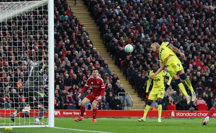 Á lokamínútum leiksins tókst Richarlison loks að koma boltanum í netið eftir skelfilegan varnarleik Liverpool-manna. Randal Kolo Muani fékk tíma til að dansa með boltann í teignum, áður en hann lagði hann á dauðafrían Richarlison sem lagði boltann neðst í vinstra hornið. Verðskuldað mark Tottenham-manna.