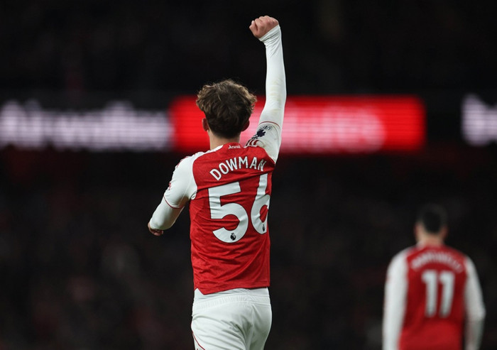 Everton fékk hornspyrnu og Jordan Pickford fór inn á teiginn í von um að ná jöfnunarmarki. Arsenal kom boltanum frá og Dowman fór framhjá tveimur Everton-mönnum og hljóp upp allan völlinn og skoraði í autt markið.
