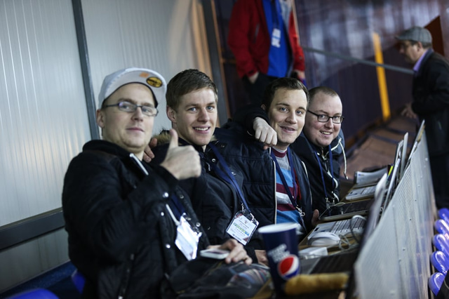 Frá Zagreb 2013. Þessir hafa allir starfað við Fótbolta.net og þrír þeirra eru enn að. Hörður Snævar Jónsson ritstjóri 433.is, Magnús Már, Alexander Freyr Einarsson og Elvar Geir.