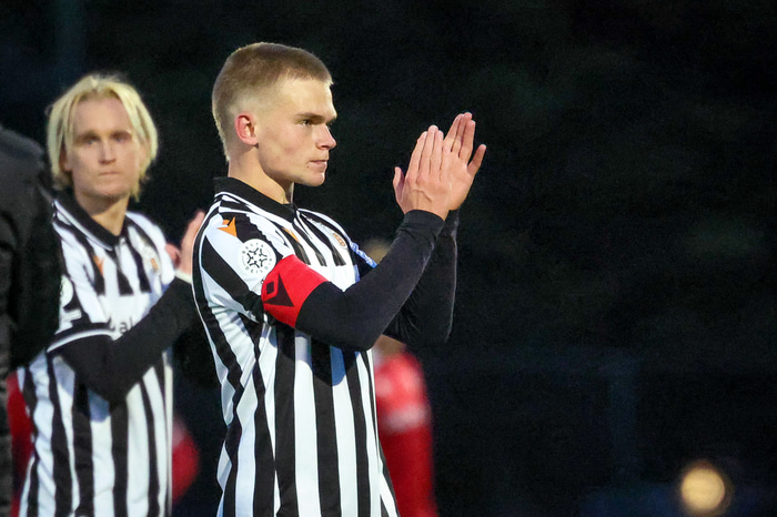 Jóhannes, sem er tvítugur, kláraði leikinn í gær með fyrirliðabandið og er talað um það í þættinum að hann hafi tekið sig vel út með bandið líkt og pabbi hans, Bjarni Guðjónsson, gerði hjá KR á sínum tíma.