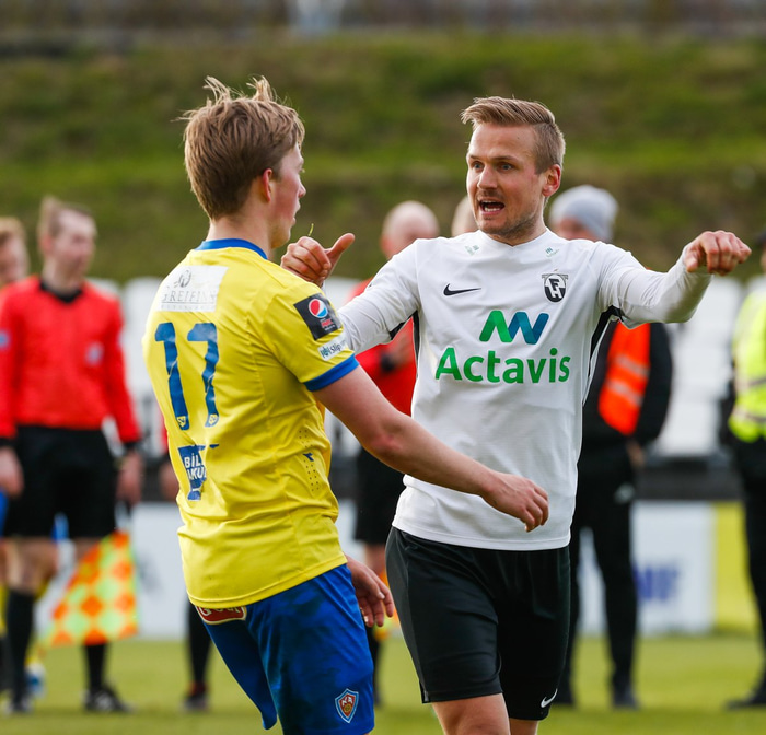 Pétur var heppinn að fá ekki rautt eftir leik FH og KA í síðustu umferð þegar hann veittist að Ými Má Geirssyni á gulu spjaldi.