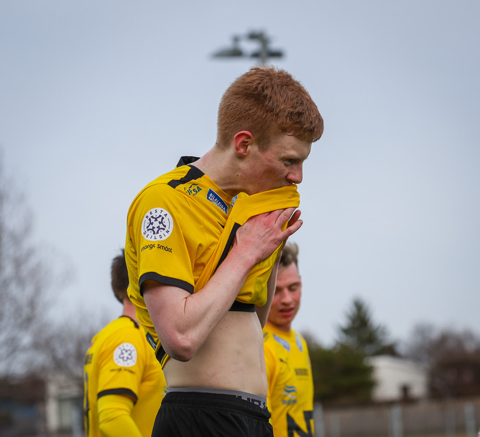Gísli Laxdal Unnarsson kom sér í baráttuna og virtist slá til danska leikmannsins sem féll til jarðar. Gísli hélt áfram og lagði svo boltann skemmtilega vinstra megin inn í teiginn á Steinar Þorsteinsson sem lagði hann fyrir markið á Eyþór Wöhler sem skoraði.