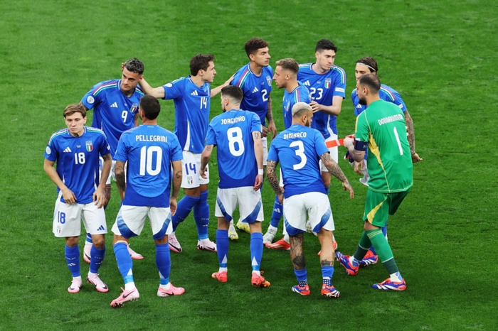 Ítalir brugðust við með góðri sókn þar sem Lorenzo Pellegrini skaut boltanum rétt framhjá markinu, en staðan er 1-0 í upphafi leiks.