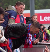Stuðningsmenn gestaliðsins voru langt frá öskuillir; dómari leiksins fékk flösku í sig, hrækt var á dómarana þegar þeir gengu til búningsherbergja og einn var sleginn í höfuðið. Þá fékk einn í gæslunni högg í andlitið frá stuðningsmanni albanska liðsins.