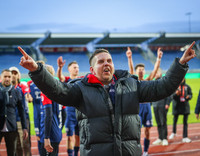 Hann náði því markmiði að koma liðinu upp í deild þeirra bestu, halda liðinu þar og nú er hann bara einum leik frá því að koma liðinu í Evrópu.