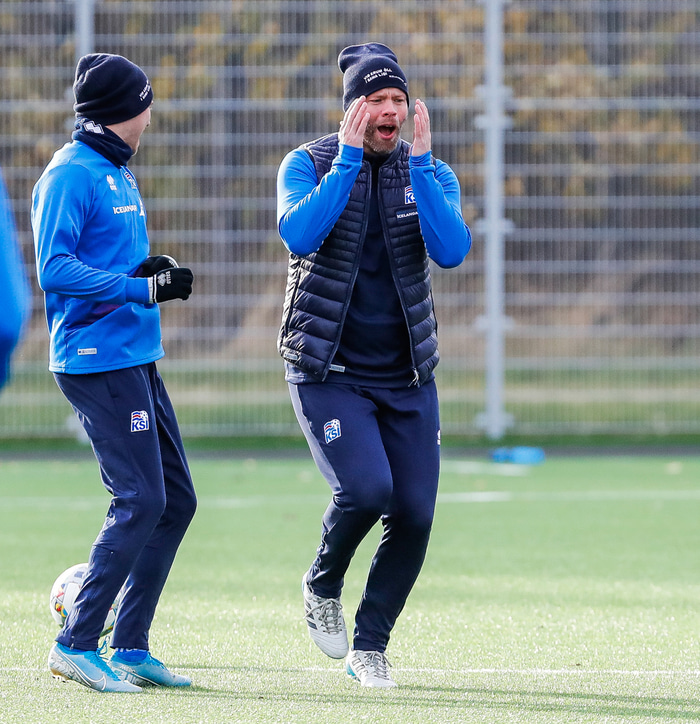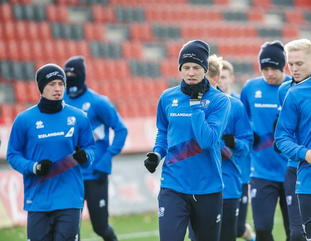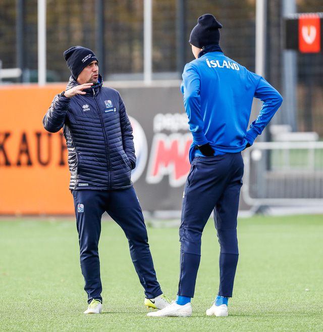 U21 landslið Íslands æfði á Víkingsvelli í gær en liðið mætir þar Írum í undankeppni EM 2021 í dag. Hér að neðan má sjá myndir af æfingunni.