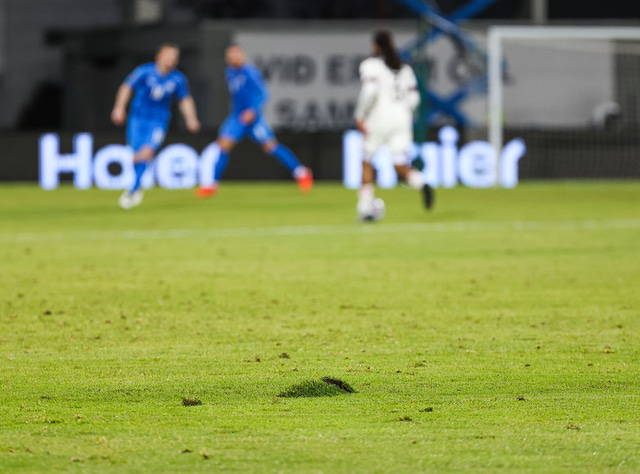 Völlurinn hefur verið í frekar slæmu ástandi í haustleikjunum og virðist sem lagning á vökvunarkerfi í sumar sé að valda usla.