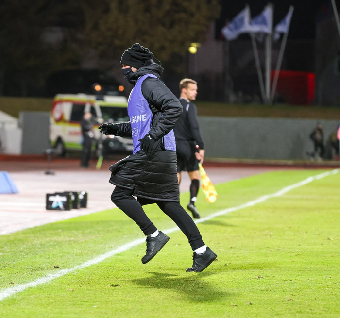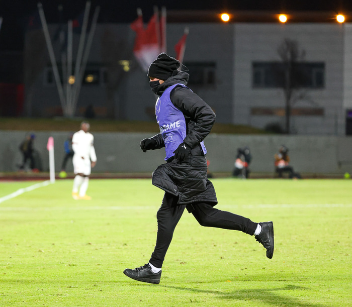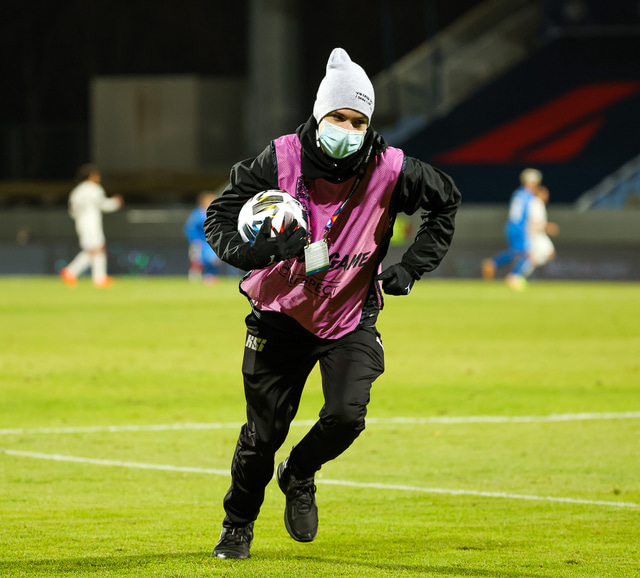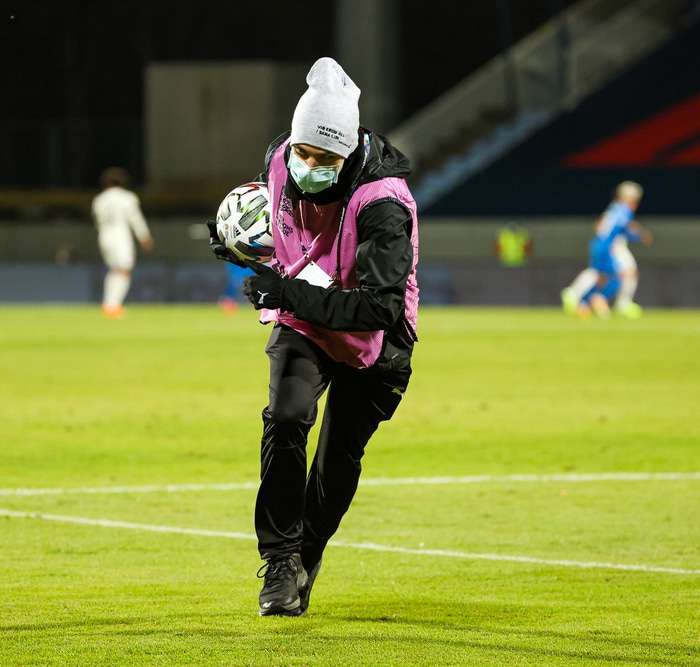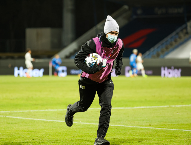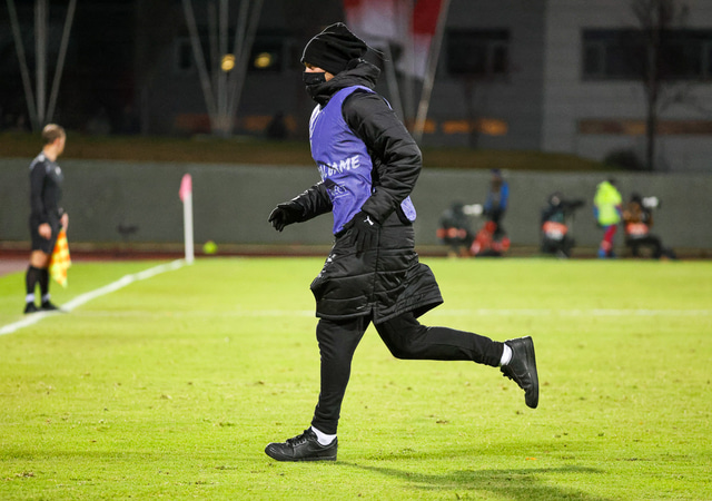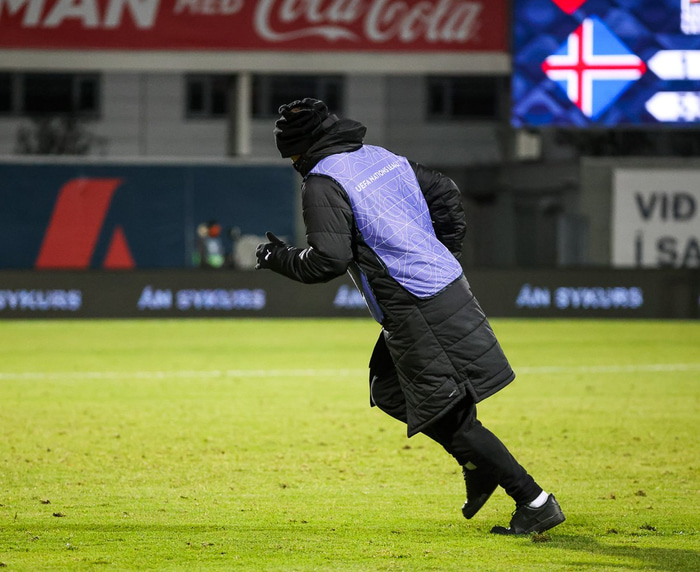 Hann var þó ekki sá eini sem þurfti að taka slíkan sprett inn á völlinn í miðjum leik því eitt skiptið fór aukabolti inn á völlinn. Boltastrákur tók þá sprettinn og náði í hann eins og sjá má á meðfylgjandi myndum.